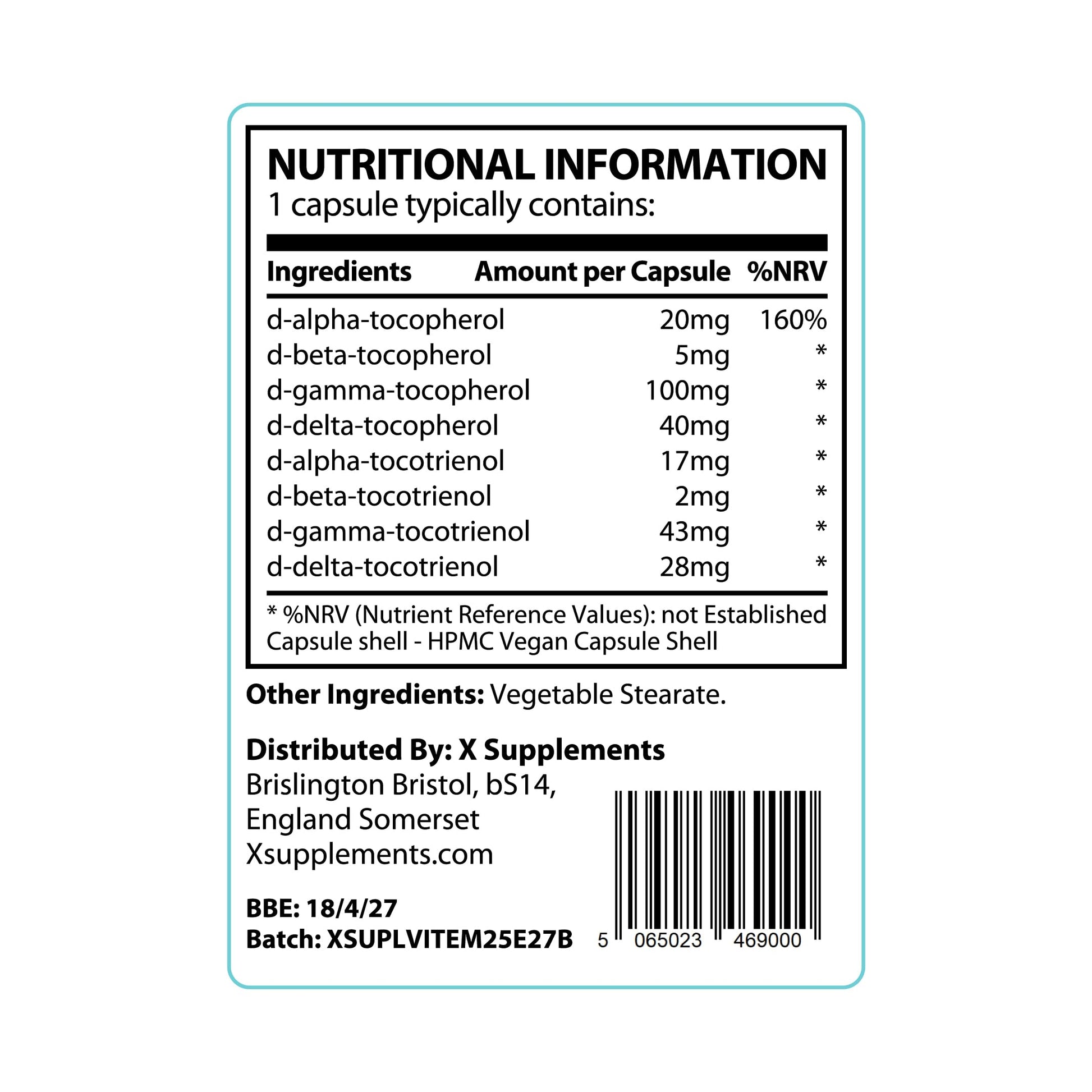 X supplements Natural Vitamin E Complex | 60 Vegan Capsules |100% Natural Ingredients | Advanced Formula | All 8 E Tocopherols & Tocotrienols | No Fillers Or Binders | X Supplements | Supports Immune Health
