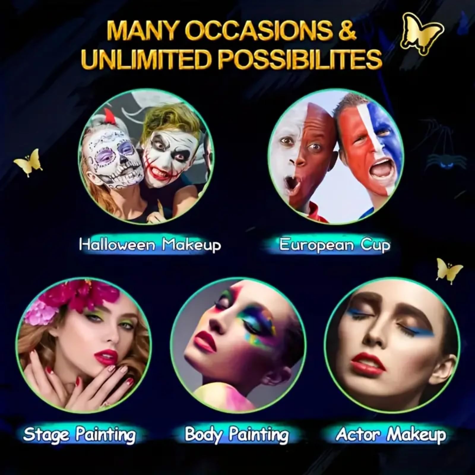 Xinyig Face Painting Kit,42 Colors Professional Face Painting Kit,Safe Body Painting for Carnival,Colourful Body Paint Colours,Neon Face Paints Glow in Dark,Fancy Dress Face Paints,Face Paint for Festival