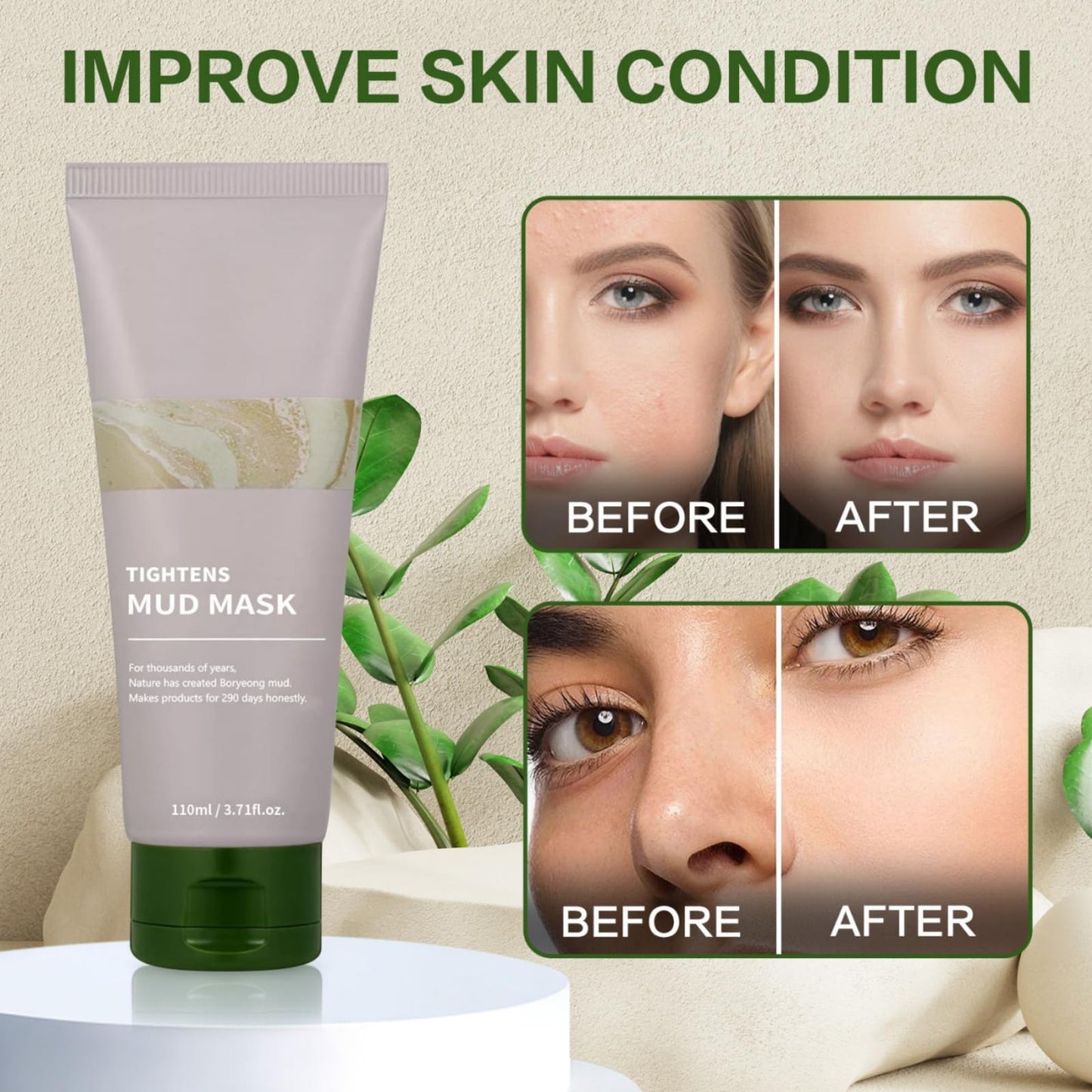 4. Our soothing mud mask has gentle ingredients that make the surface of the skin fresher and more vibrant.