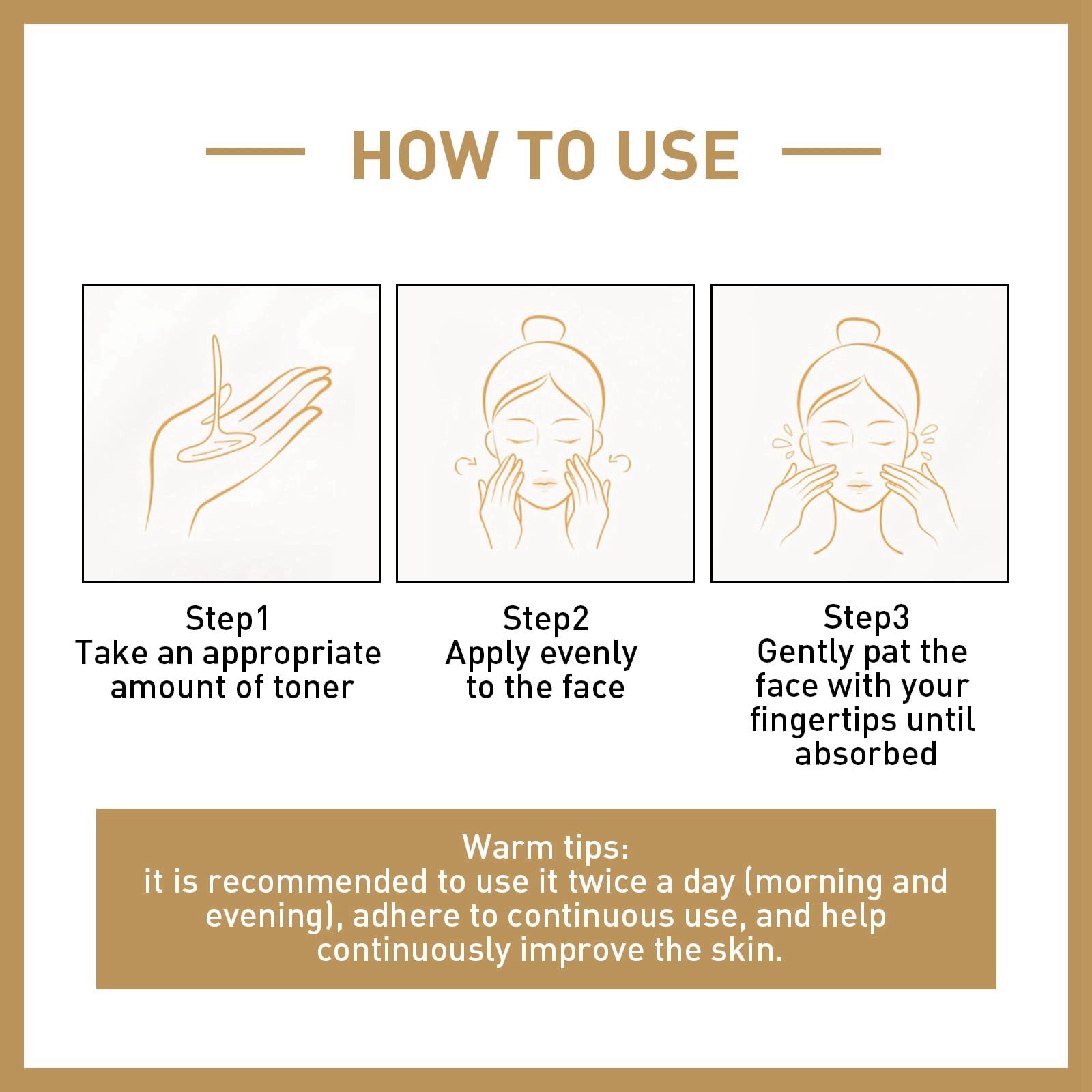 Step1 Take an appropriate amount of rice essence toner,Shake well before use.