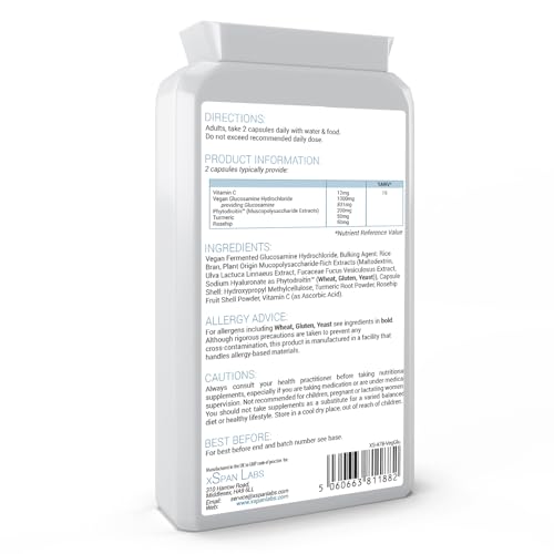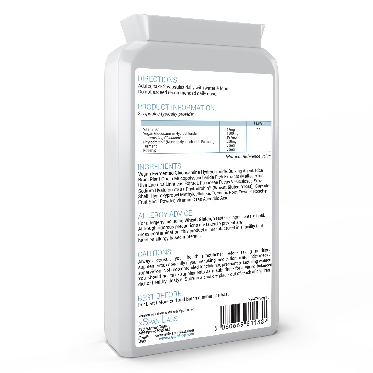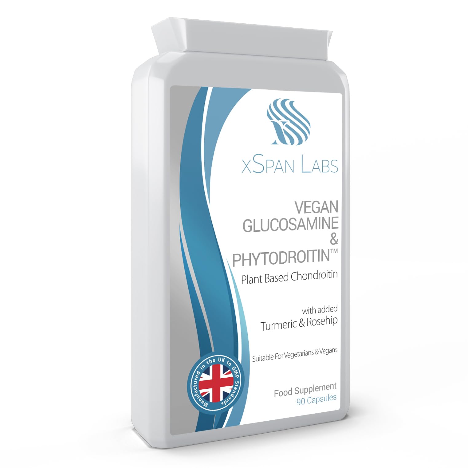 Xspan Labs Vegan Glucosamine & Phytodroitin™ 90 Capsules - with Plant Based Chondroitin, Turmeric, Rosehip and Vitamin C to Promote The Health of Cartilage and Bones - UK Made