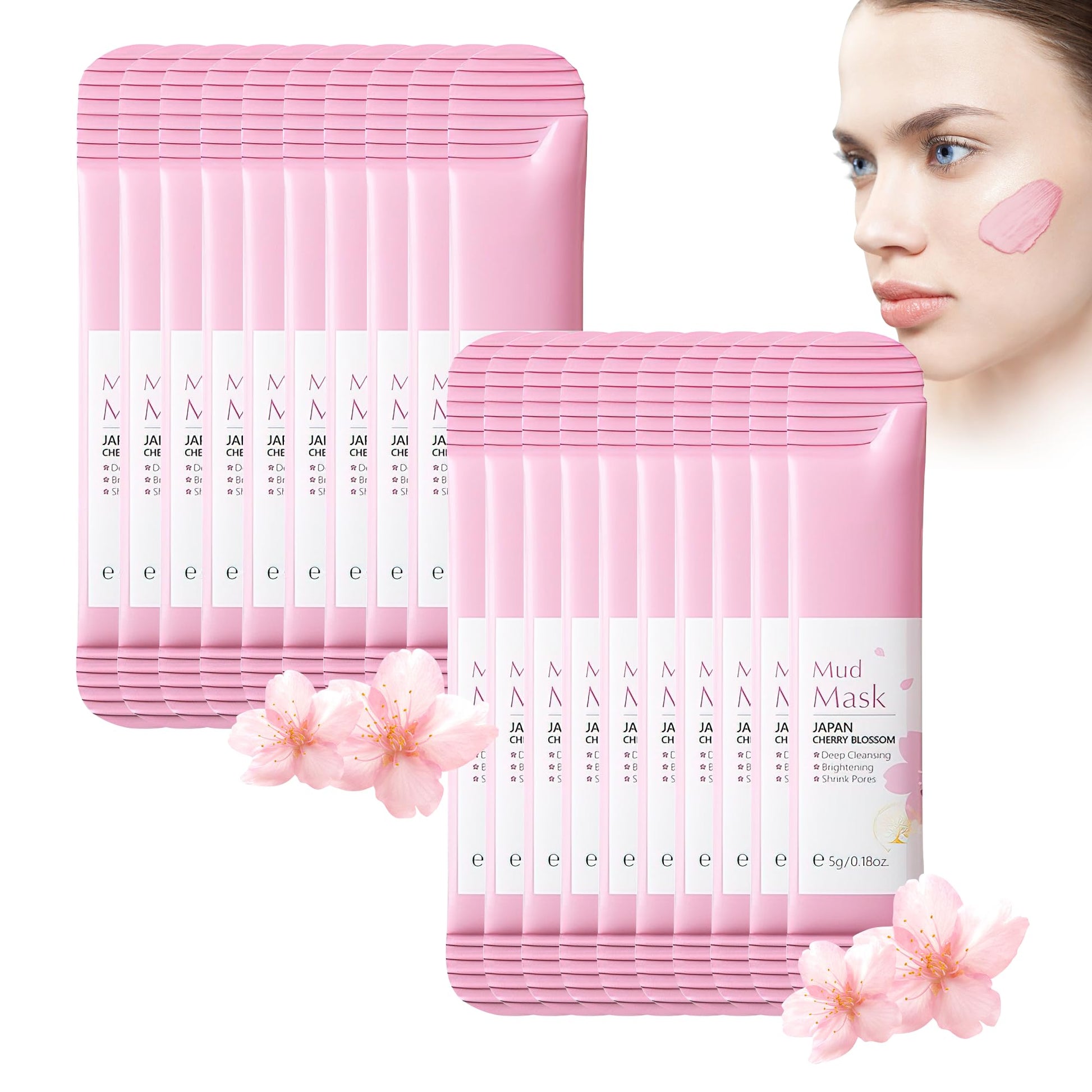 Xumann 20PCS Sakura Skincare Set, Deep Cleanse Pink Face Mask Skincare, Brightening and Moisturizing Pink Clay Mask