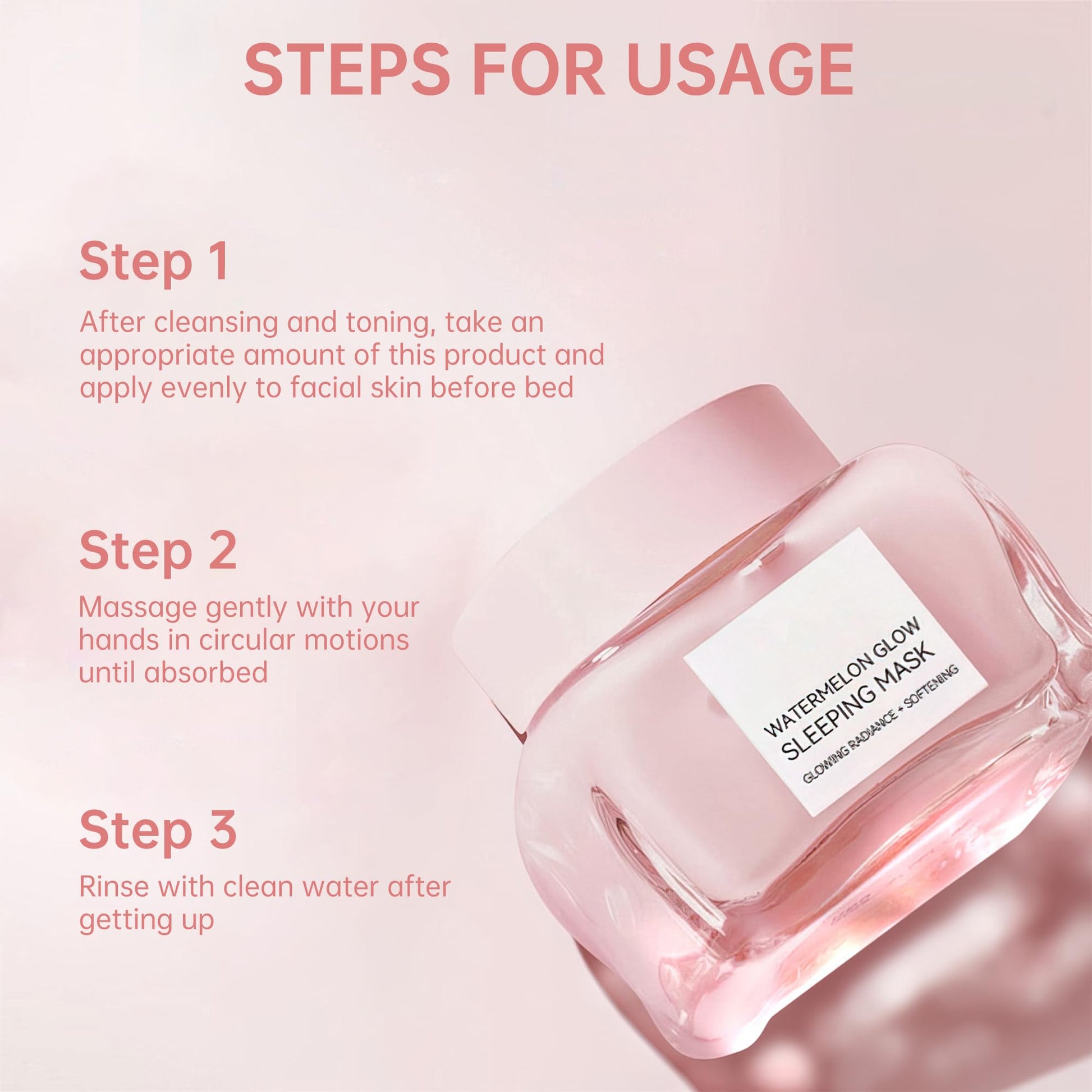 From the Moisturizing Watermelon Serum, enriched with potent antioxidants and hydrating agents, to the revitalizing sleeping mask that works overnight to repair and nourish your skin, every step is meticulously designed to enhance your natural beauty.
