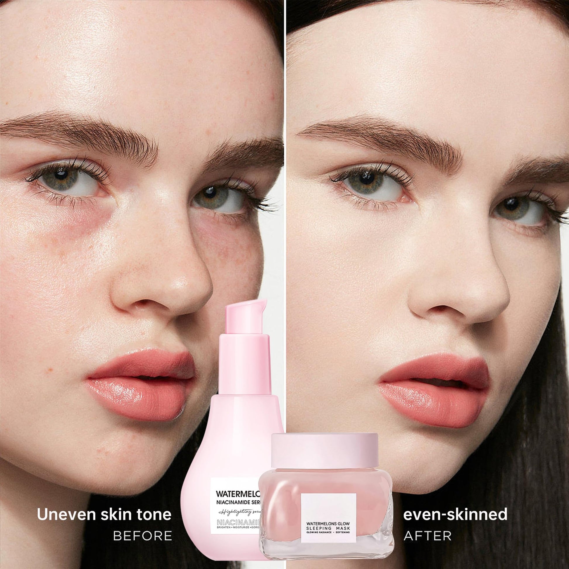 Xumann 2PCS Watermelon Niacinamide Serum & Watermelon Sleeping Mask Set, Dew Drops Recipe Watermelon skincare Pore Tight Toner Teenage Girls