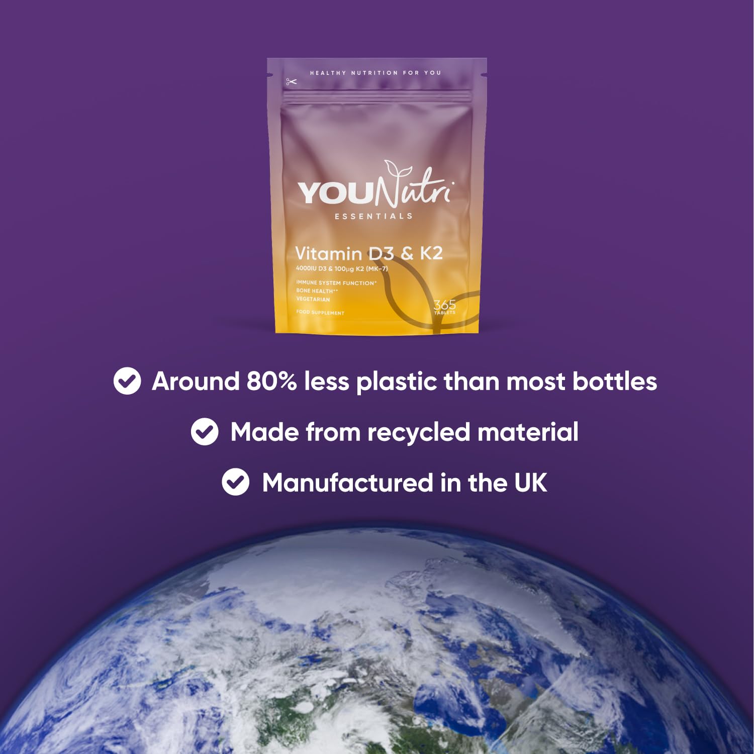 YouNutri Vitamin D3 4000 iu & Vitamin K2 MK-7 100μg - 1 Year Supply, 365 Easy-Swallow Vitamin D3 K2 Tablets, 1-A-Day High Strength Vegetarian D3 and K2 Vitamin Supplements, UK Made Vitamin D Tablets