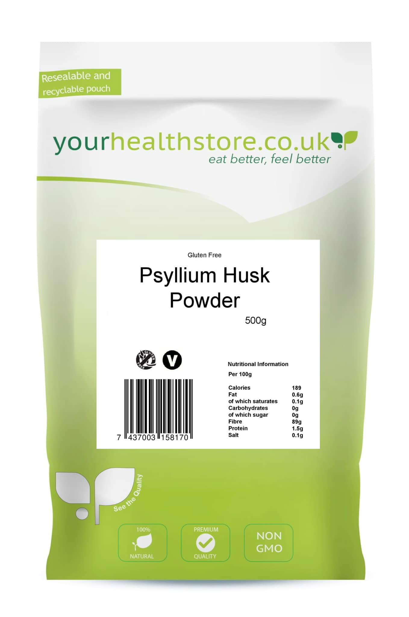 yourhealthstore Psyllium Husk Powder 500g, Extra High Purity, Non Contaminated, No Pesticides, Fine Powder, Gluten Free, Vegan, (Recyclable Pouch)