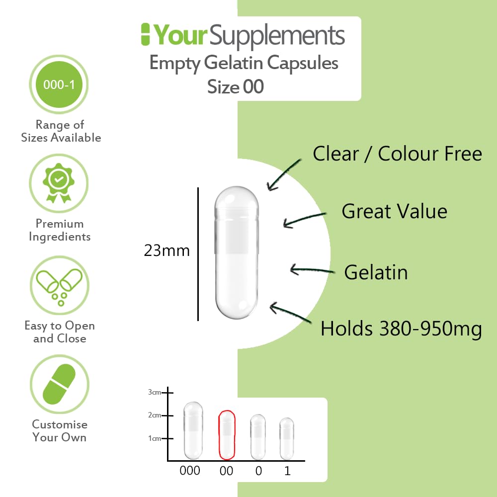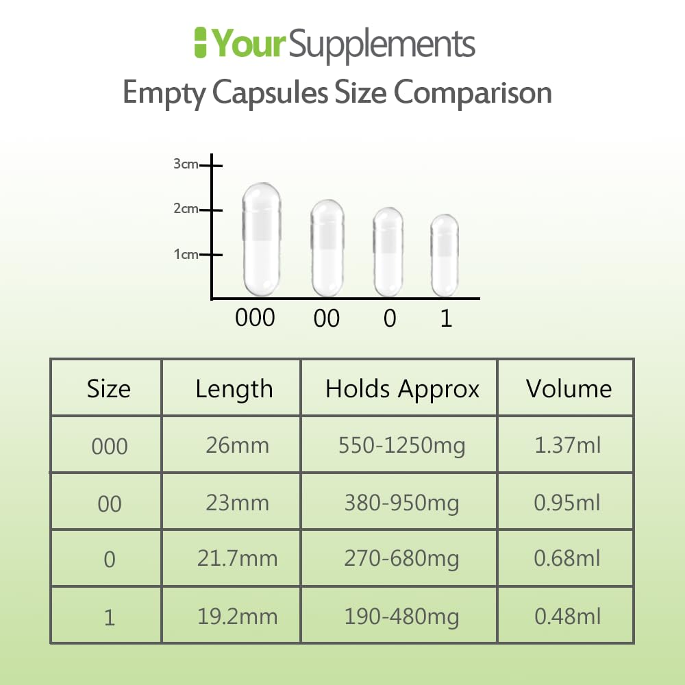 YourSupplements - Size 00 Empty Gelatin Capsules (1000 Pack)
