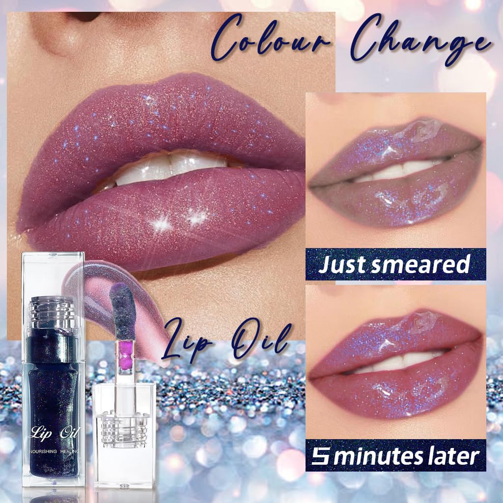 YUYUE-YY Colour Changing Lip Oil, Magic Colour Changing Lip Oil, Plumping Lip Gloss, Glitter Lip Gloss, Hydrating Glitter Shine Liquid Lipstick Moisturizing Lip Care Lip Gloss for Teenage Girls (3#Black Pearl)