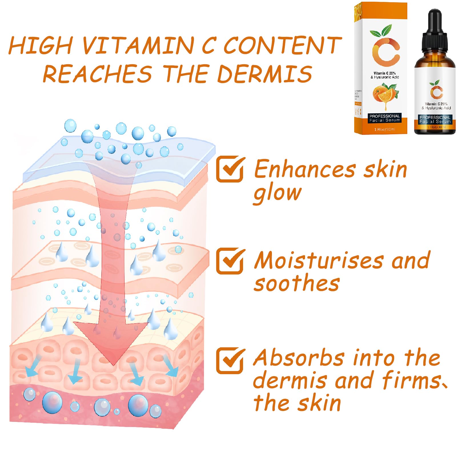 YUYUE-YY Vitamin C Serum, Face Serum for Women With 20% Vitamin C, Shinning & Antioxidant Serum, Powerful Antioxidant Protection, Brighter & Smoother Skin, includes Hyaluronic Acid for Women and Men