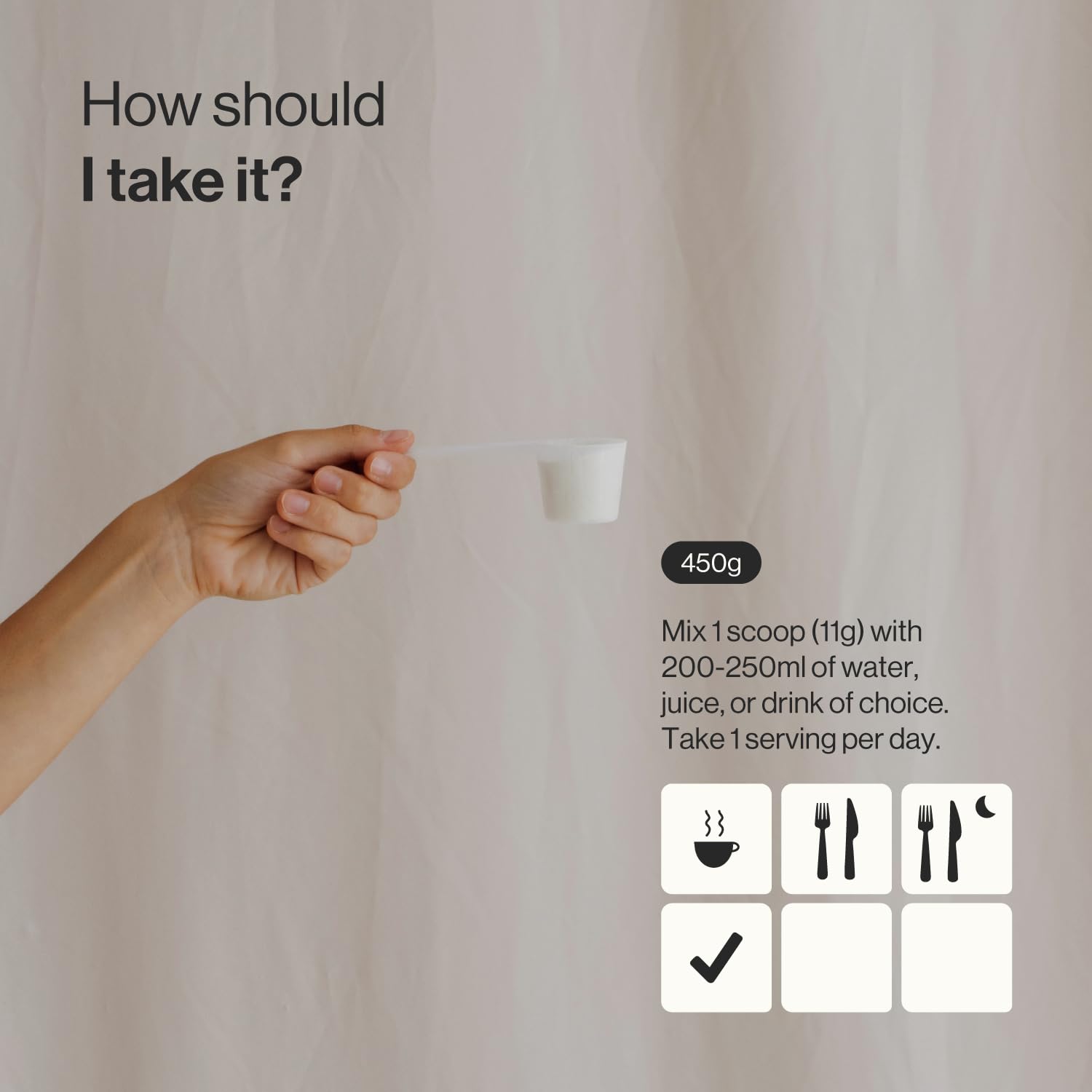 Content per dose (11 g): Hydrolysed Collagen Peptides Type I & III (as CollaSel Premium)..................... 10.4g Hyaluronic Acid (as Sodium Hyaluronate) ......................................................... 100mg Vitamin C (as Ascorbic Acid) ................................................................... 80mg (100% NRV*) Magnesium (as Magnesium Citrate) ........................................................60mg (16% NRV*) Zinc (as Zinc Bisglycinate) ........................................................................5mg (50% NRV*) *NRV: Nutrient Reference Value. Discover the excellence of Hydrolysed Collagen Peptides, a supplement designed to be easily incorporated into your daily routine. Our collagen is made from the highest quality ingredients, ensuring exceptional purity and potency. - High solubility: Forget about lumps. These collagen peptides dissolve perfectly in any type of liquid, hot or cold. Ideal for adding to your smoothies, coffee or even baking recipes, you can enjoy a smooth and homogeneous drink. - Flavourless and odourless: Enjoy the benefits of collagen without worrying about flavours or odours. Perfect for those seeking a neutral and pleasant experience. It is also gluten and lactose-free. - Premium quality: Sourced from grass-fed cattle, our collagen peptides are 100% pure and additive-free. This premium formulation focuses on providing you with the best possible product without compromising quality. Enriched with Vitamin C, Zinc and Magnesium, essential for overall wellbeing. - Complete and advanced formula: Contains type I and type III collagen peptides, essential for joint and skin care. Vitamin C stimulates collagen synthesis, zinc protects cells from oxidative stress and magnesium contributes to normal muscle function. A perfect combination for your daily well-being. - Practical packaging: Comes in a 450g sachet, perfect for extended use and easy storage. Ideal for those looking for a continuous supply without the hassle of frequent purchases. With our Hydrolysed Collagen Peptides, you are choosing a supplement that fits perfectly with your lifestyle, providing an effective and convenient solution for incorporating collagen into your daily life.More Info