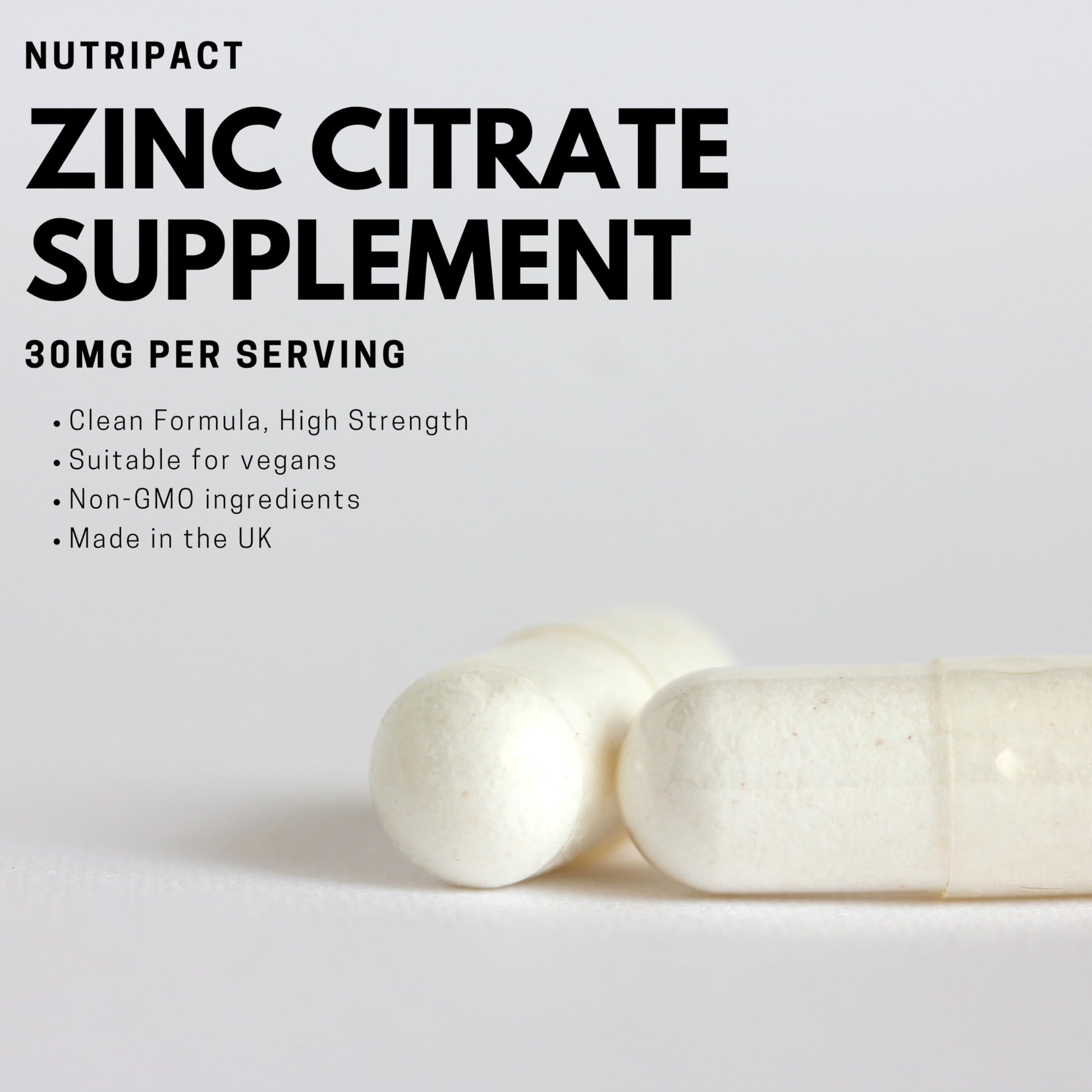 Zinc Supplement High Strength Zinc Citrate Capsules - 30mg Elemental Zinc (300% NRV) per serving - 120 Vegan Capsules - UK Made