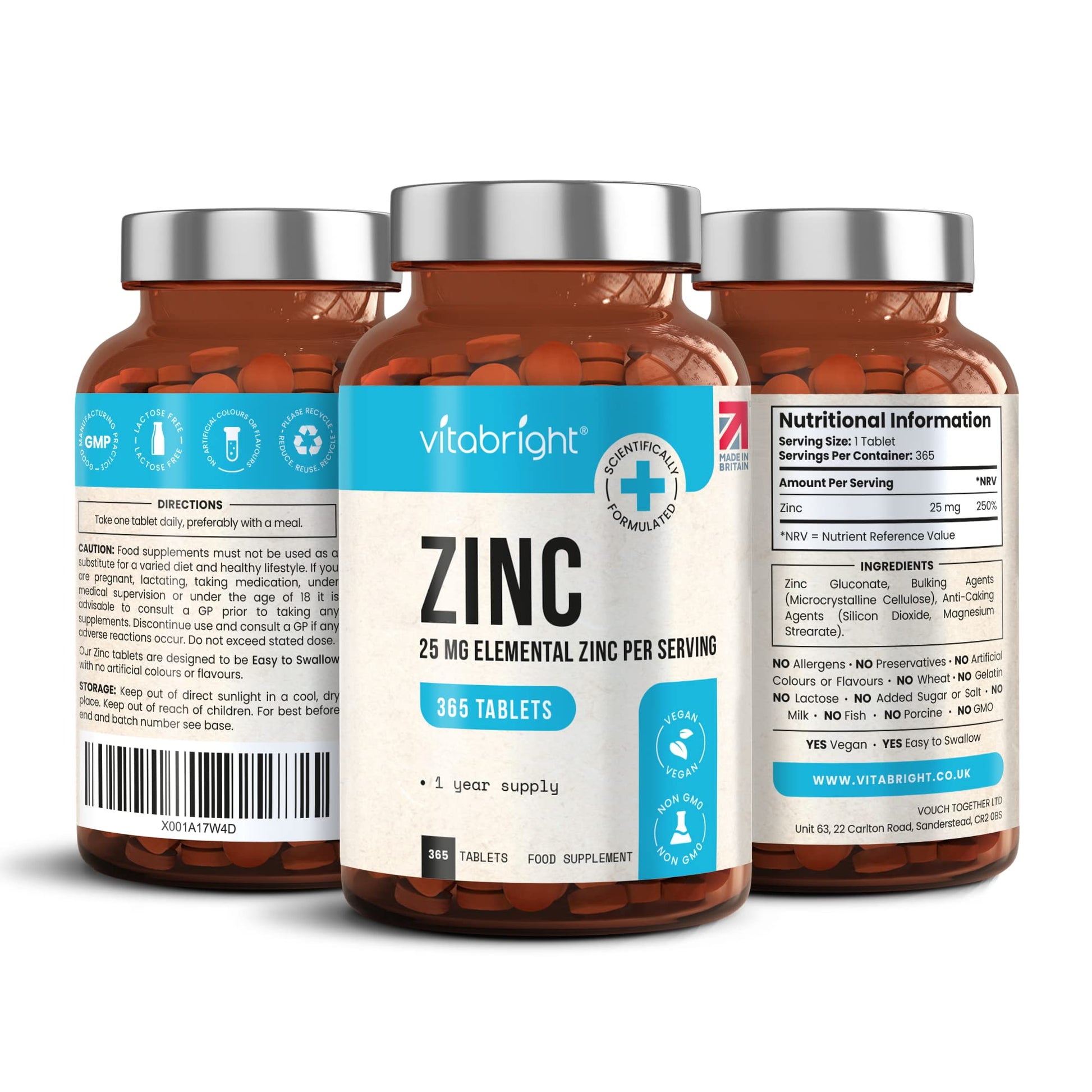 - ✔ HIGH STRENGTH NATURAL ZINC TABLETS: Optimum Strength 25mg Zinc Gluconate tablets, formulated to be easily absorbed by the body providing 25mg of elemental Zinc per tablet. The maximum safe dosage to maintain normal bones, vision, hair, skin, nails, immune system and metabolism. Claims substantiated by EFSA.