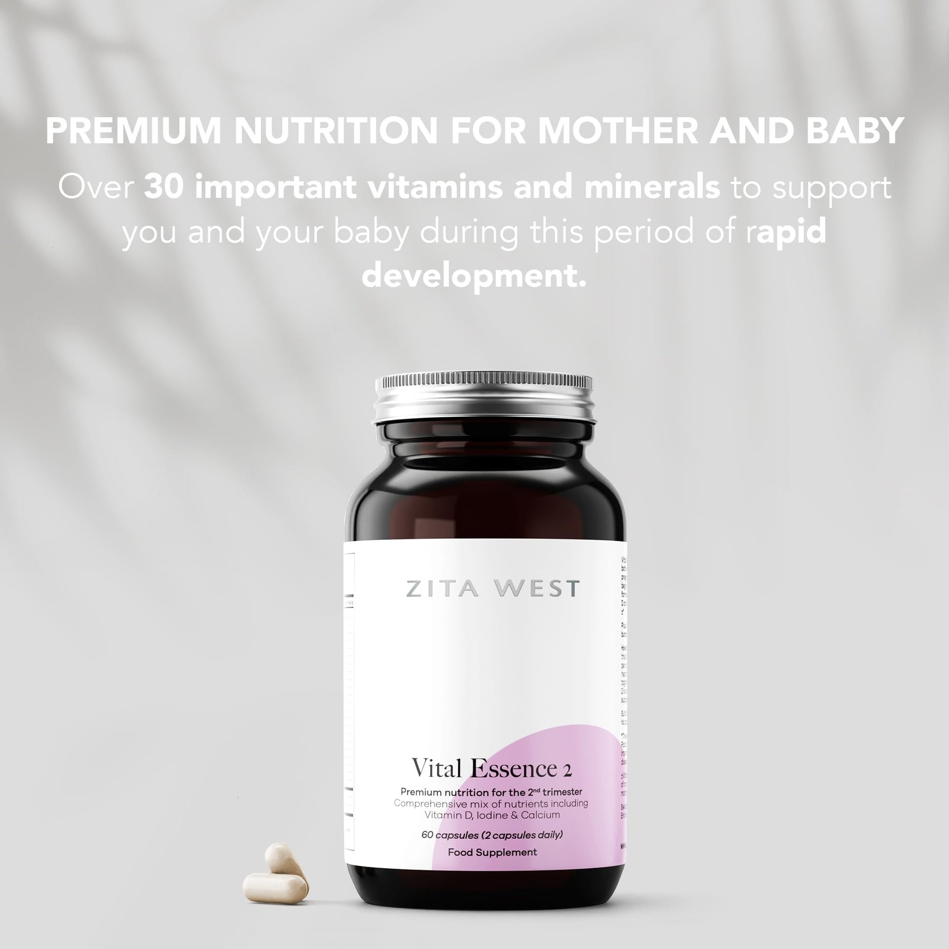 Zita West Vital Essence 2 - Premium Pregnancy Vitamins for Women - Second Trimester Multivitamins - 60 Capsules (1 Month Supply)