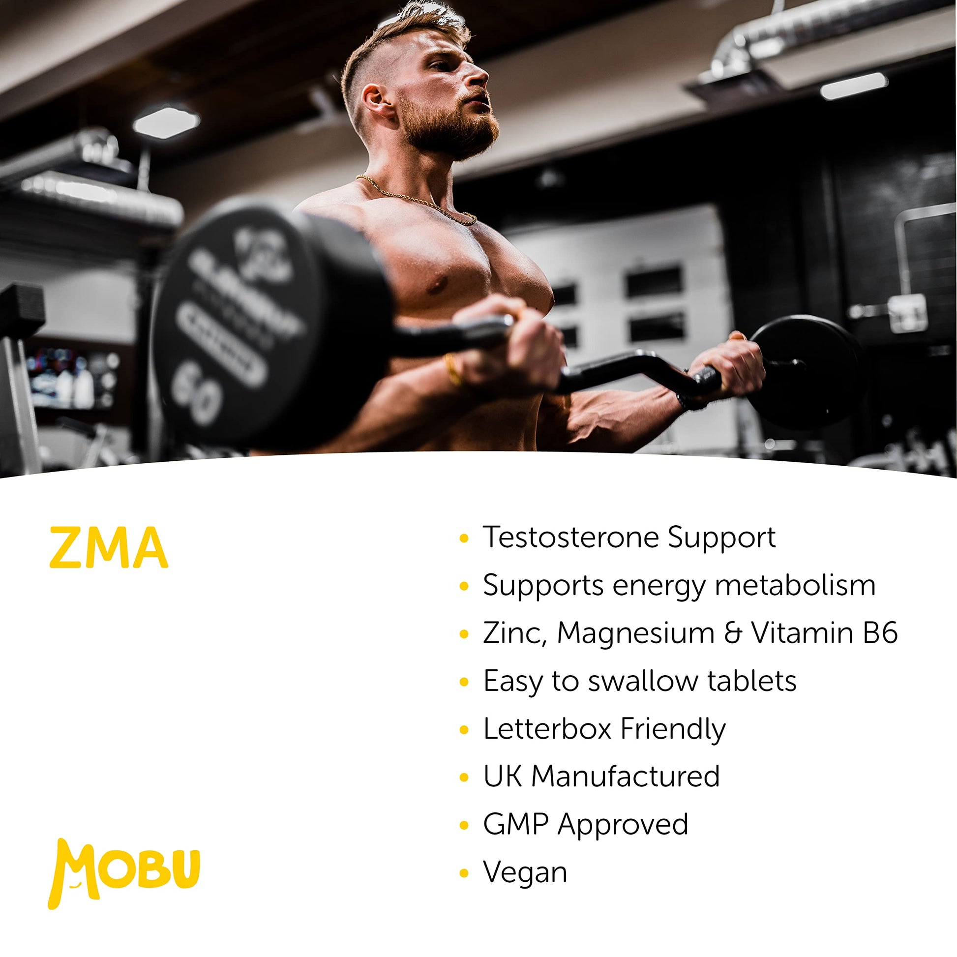 ZMA 120 Tablets | Vitamin B6, Magnesium and Zinc | Normal Muscle Function & Energy Yielding Metabolism | Muscle Growth & Sleep Support | Vegan MOBU UK