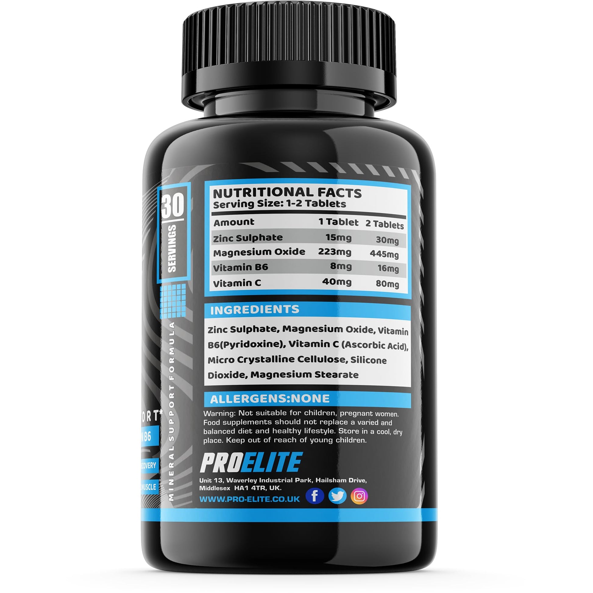 ZMB6 60 Tablets Gluten Free Vegan Vitamin B6, Magnesium and Zinc Tablet | Normal Muscle Function & Energy Yielding Metabolism | Muscle Growth & Sleep Support | PROELITE UK (60 Count (Pack of 1))