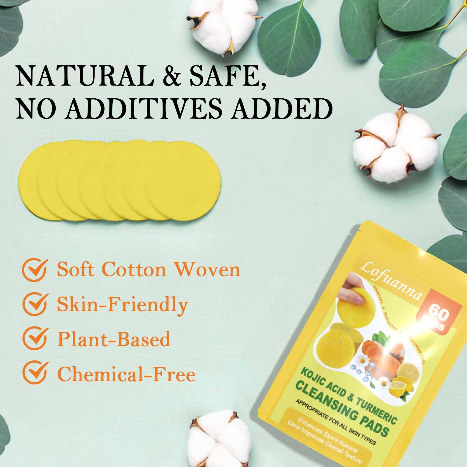 ZTSMSWY Turmeric Kojic Acid Pads,Kojic Acid and Turmeric Pads,Turmeric Kojic Acid Pads Exfoliating Pads, Turmeric Kojic Acid Cleansing Pads for Dark Spots 60 Pads