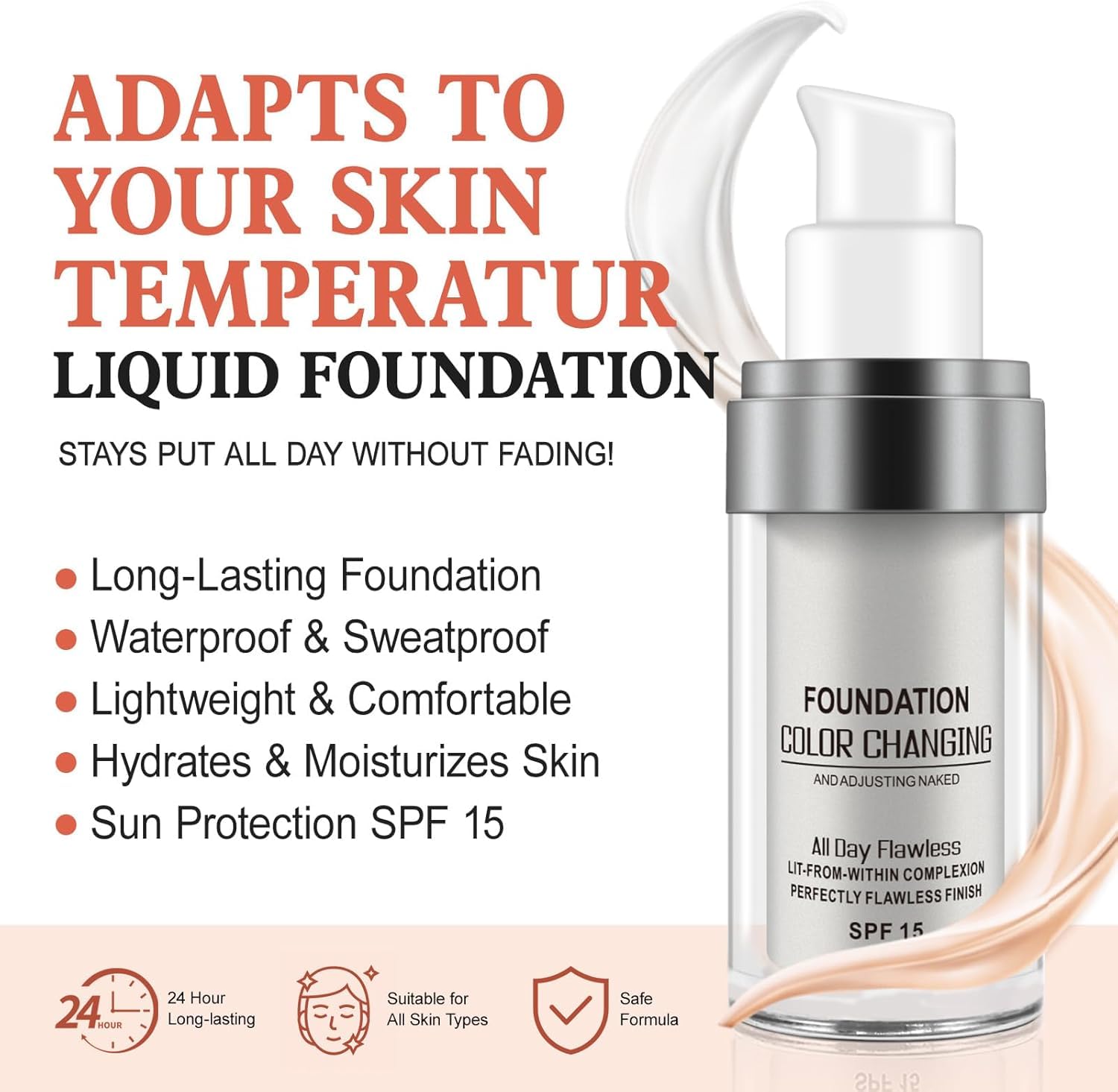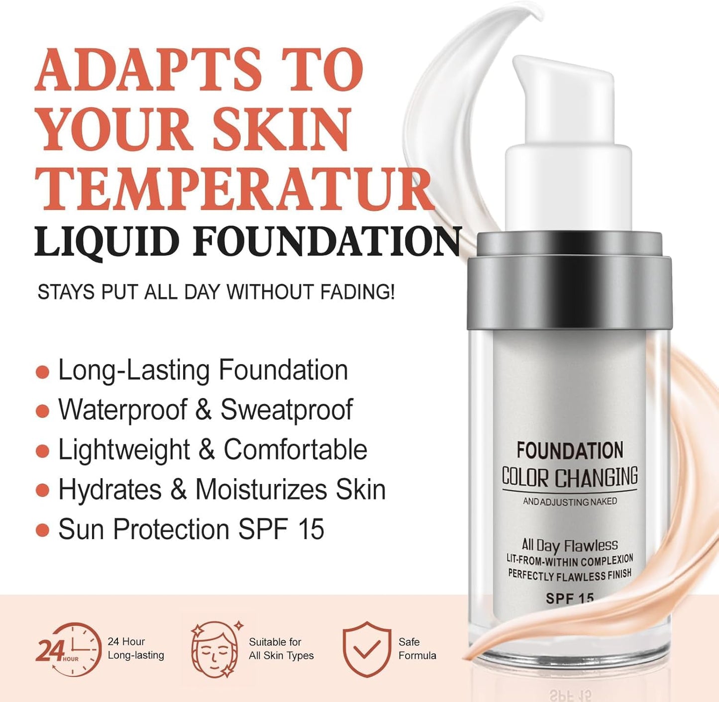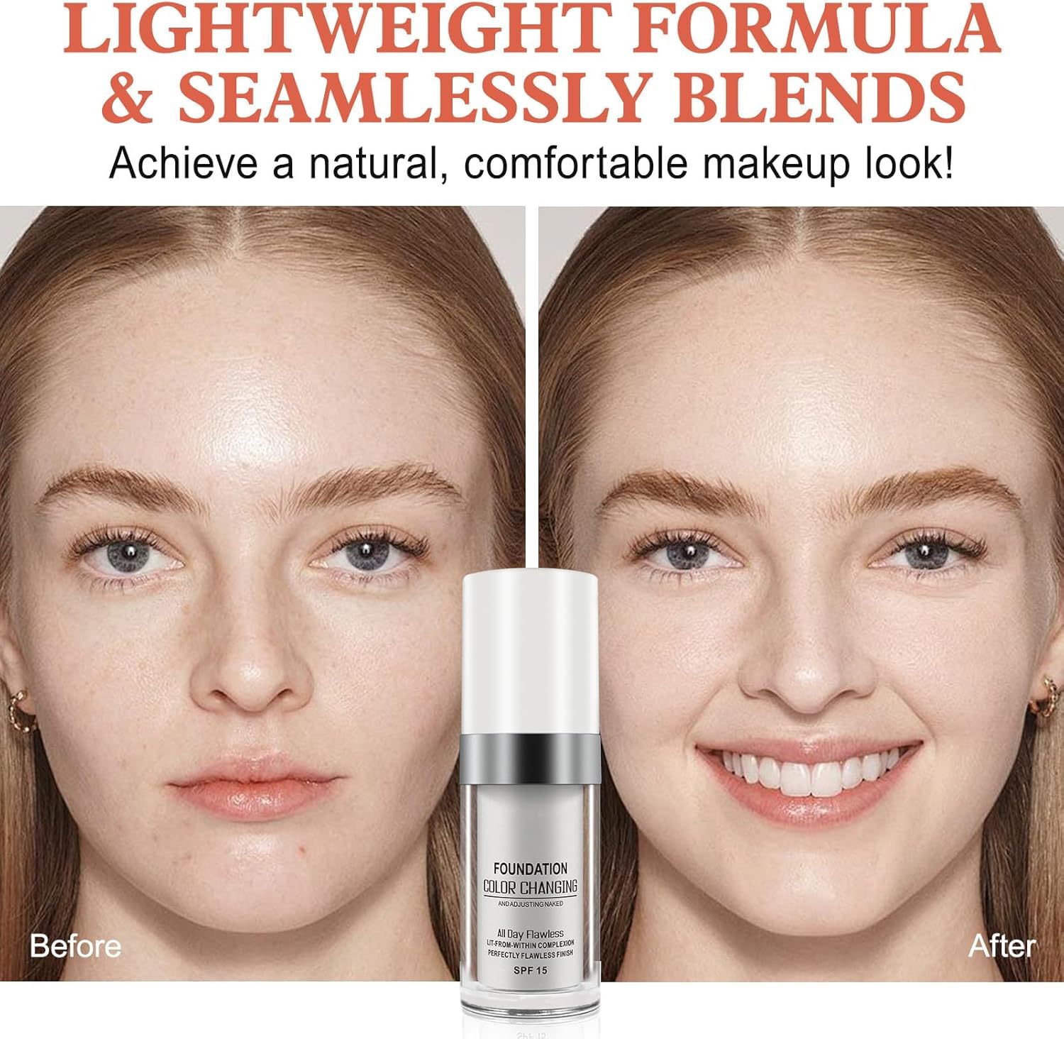 ZyranovaE 2Pack Colour Changing Liquid Foundation,Liquid Makeup Base Nude Face Cover Concealer Cream,Moisturizing, Sunscreen,for all Skin Tone SPF15,30ml