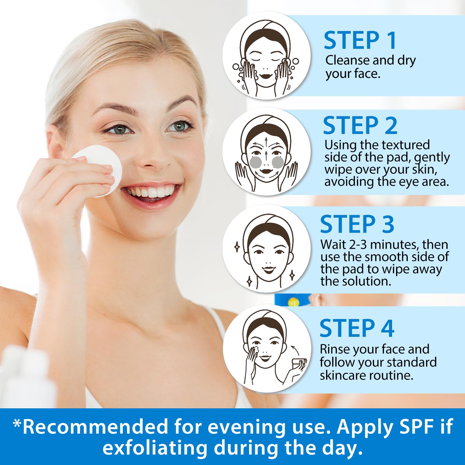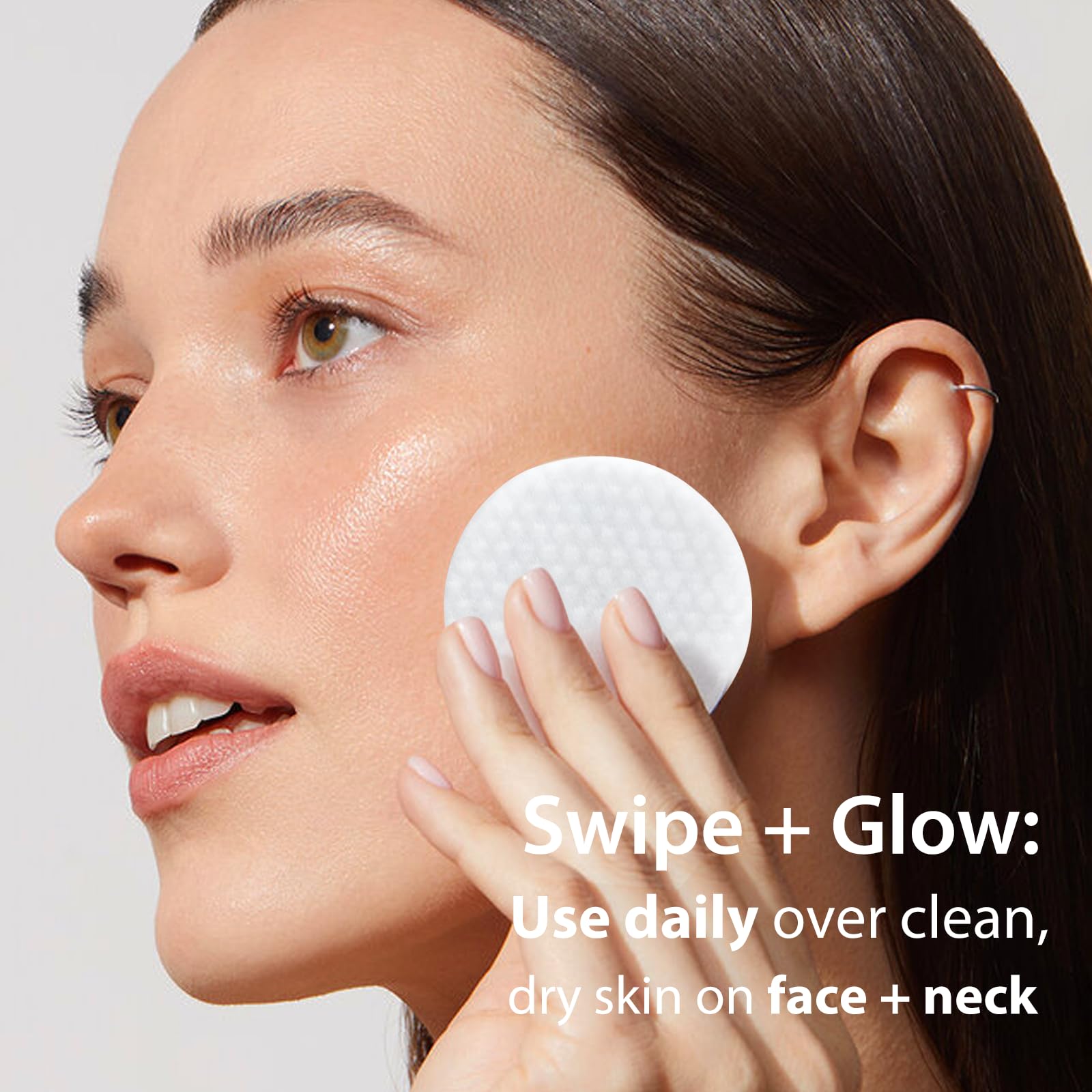 Glycolic Acid Facial Pads are crafted with a potent blend of 10% Glycolic Acid, 2% Salicylic Acid, Allantoin, Calendula, and Vitamins B3, C & E that exfoliate and resurface the skin. HOW TO USE: Cleanse and dry your face. Gently wipe over your skin, avoiding the eye area. Wait 2-3 minutes, then rinse your face and follow your standard skincare routine. For best results, use in the evening. Apply SPF if using during the day.More Info
